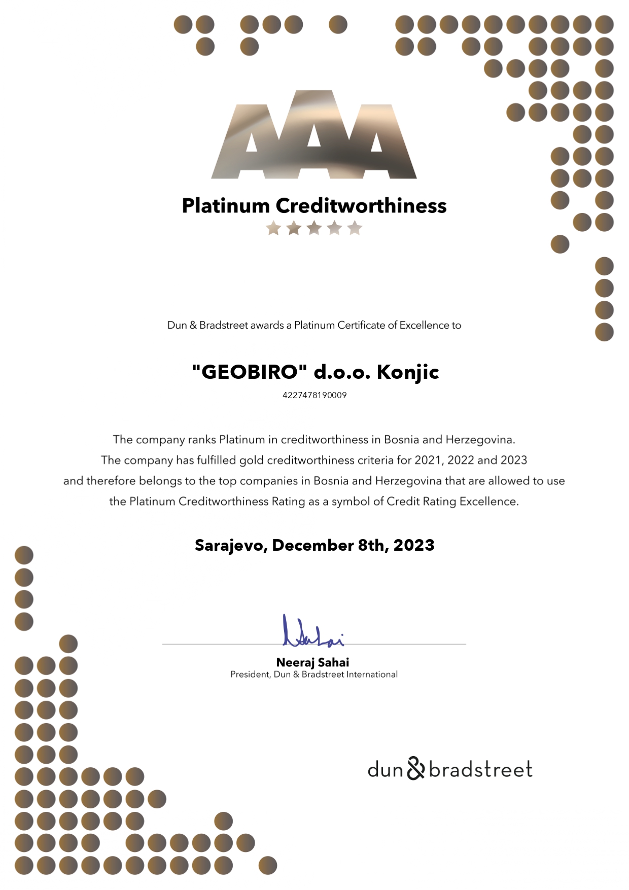 Zahvaljujući tome što u svom radu težimo vrhunskoj kvaliteti, dugogodišnjem iskustvu i stalnom praćenju potreba tržišta, tokom godina rada razvili smo se u renomiranu firmu čije ime postaje potvrda i garant kvalitete.